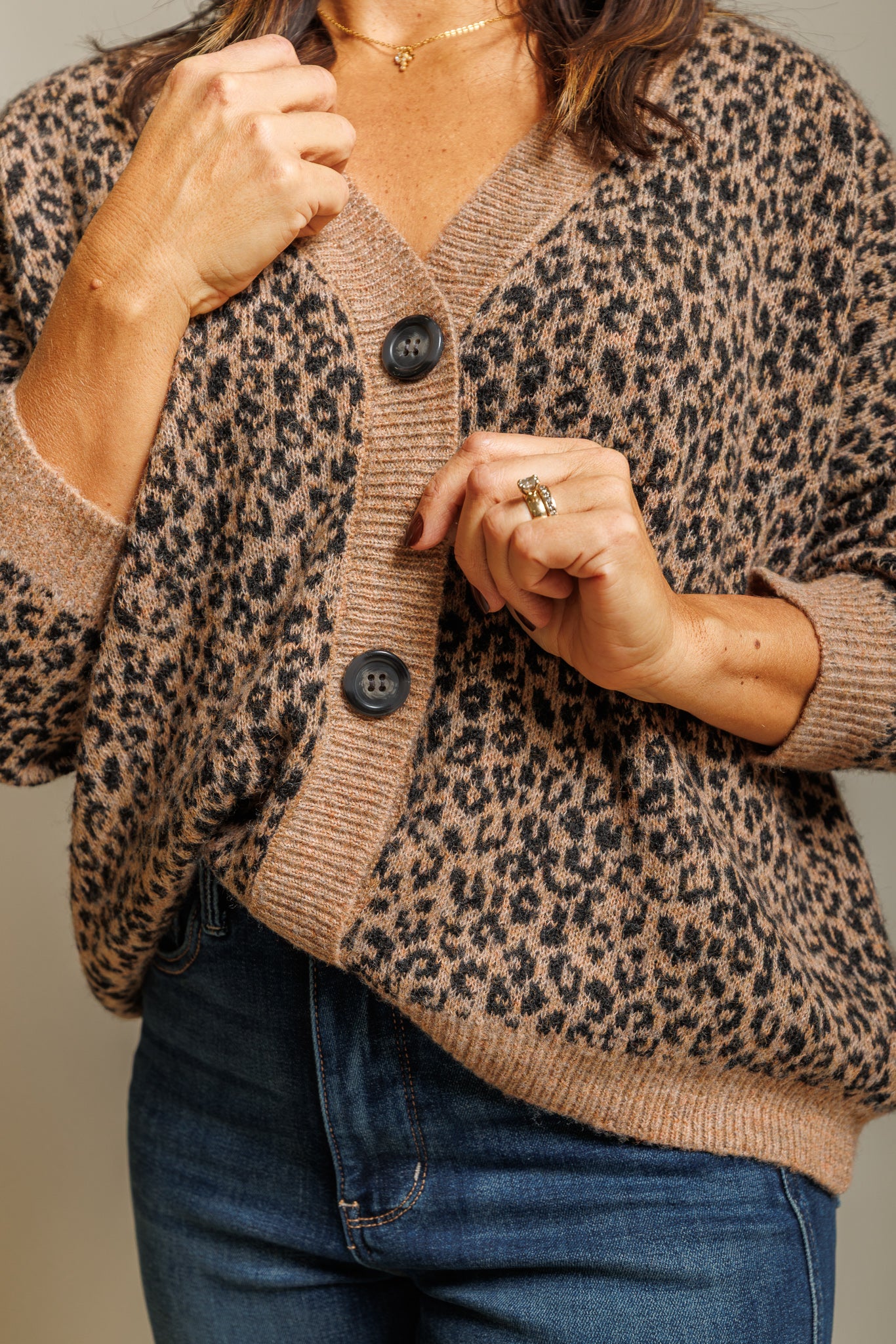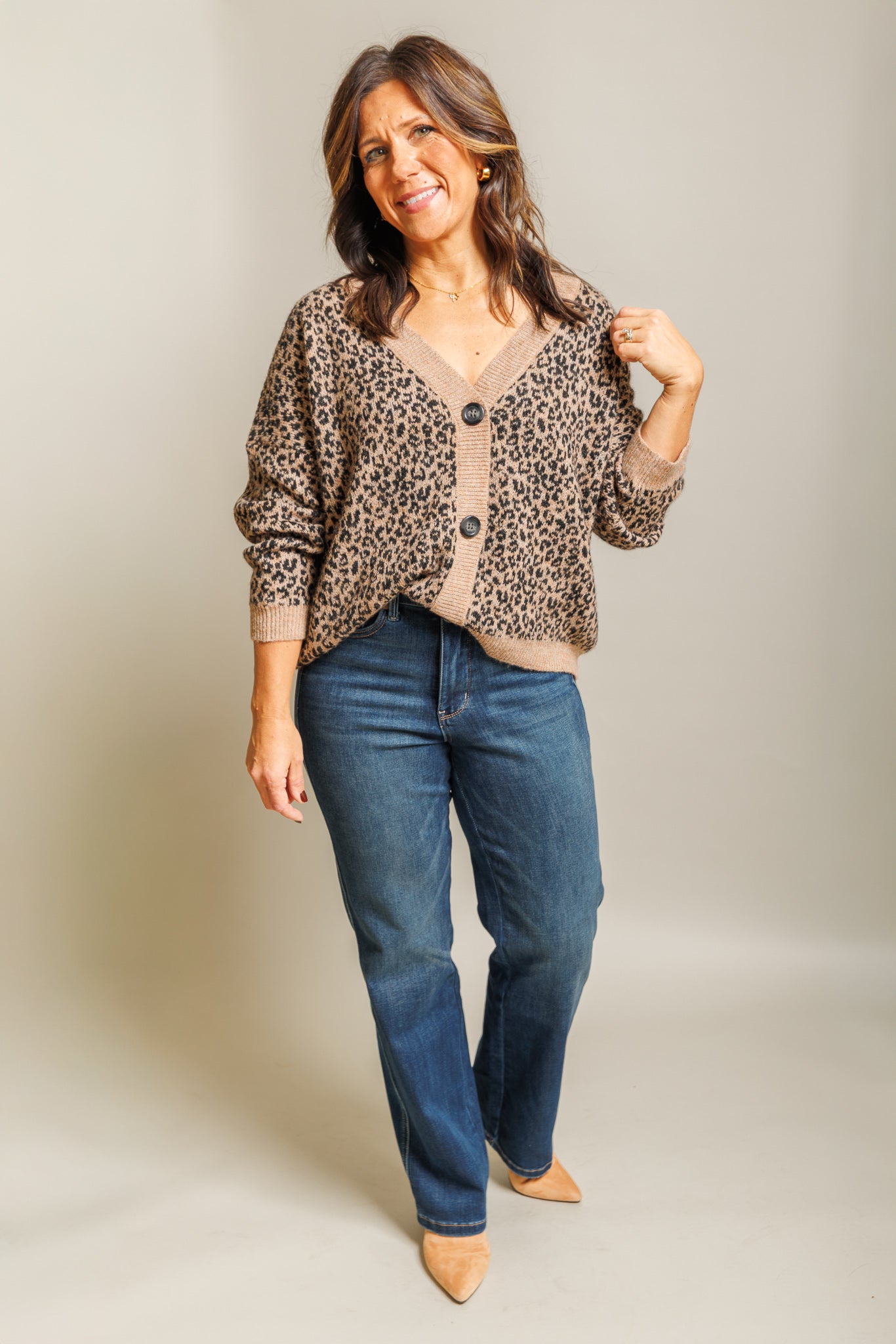 The Arna Cardigan brings a subtle statement to everyday layering. Featuring a classic leopard print and finished with warm wooden buttons, this piece balances bold detail with an easy, wearable feel. Designed to feel cozy yet intentional, it’s the kind of cardigan that elevates simple outfits without trying too hard.