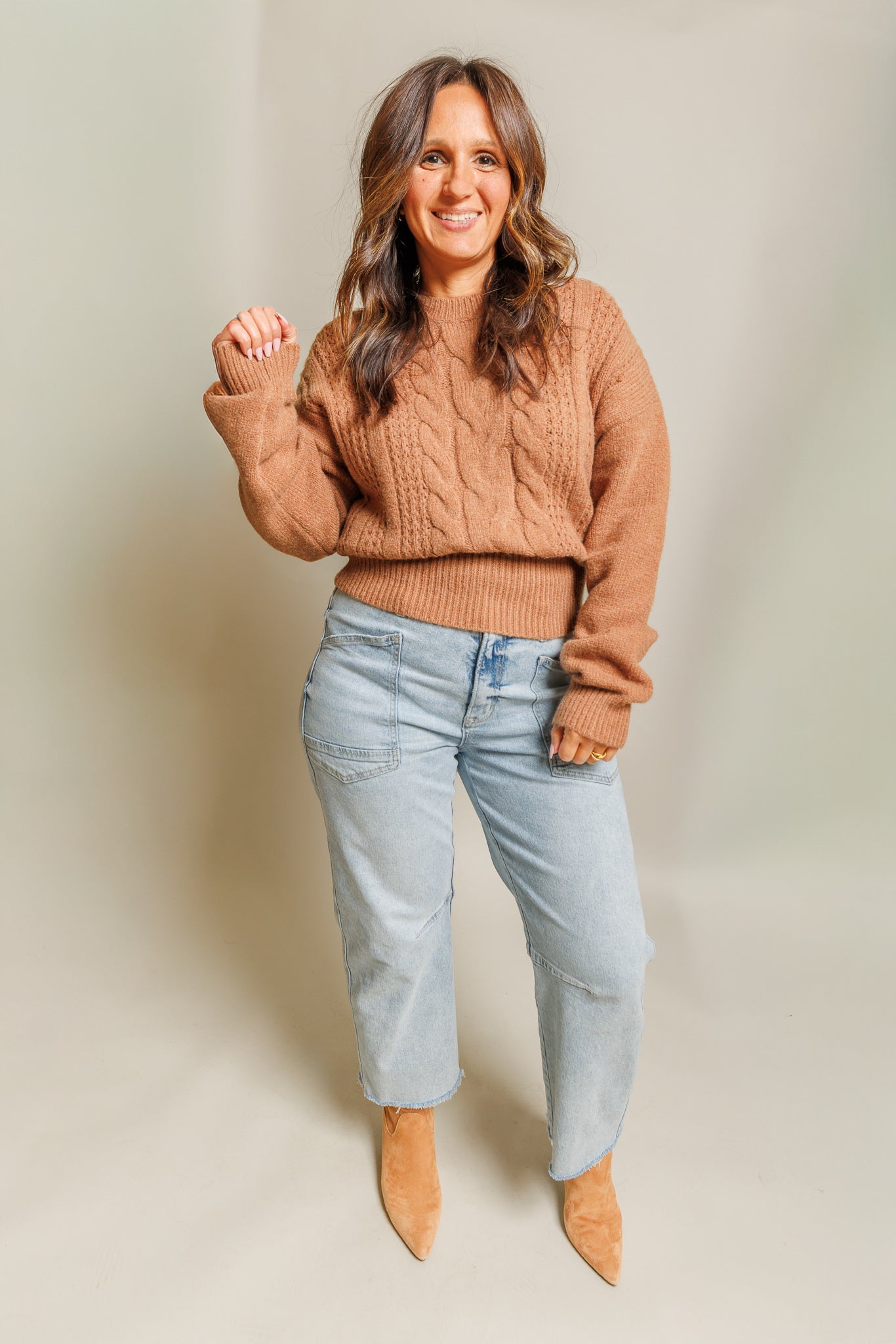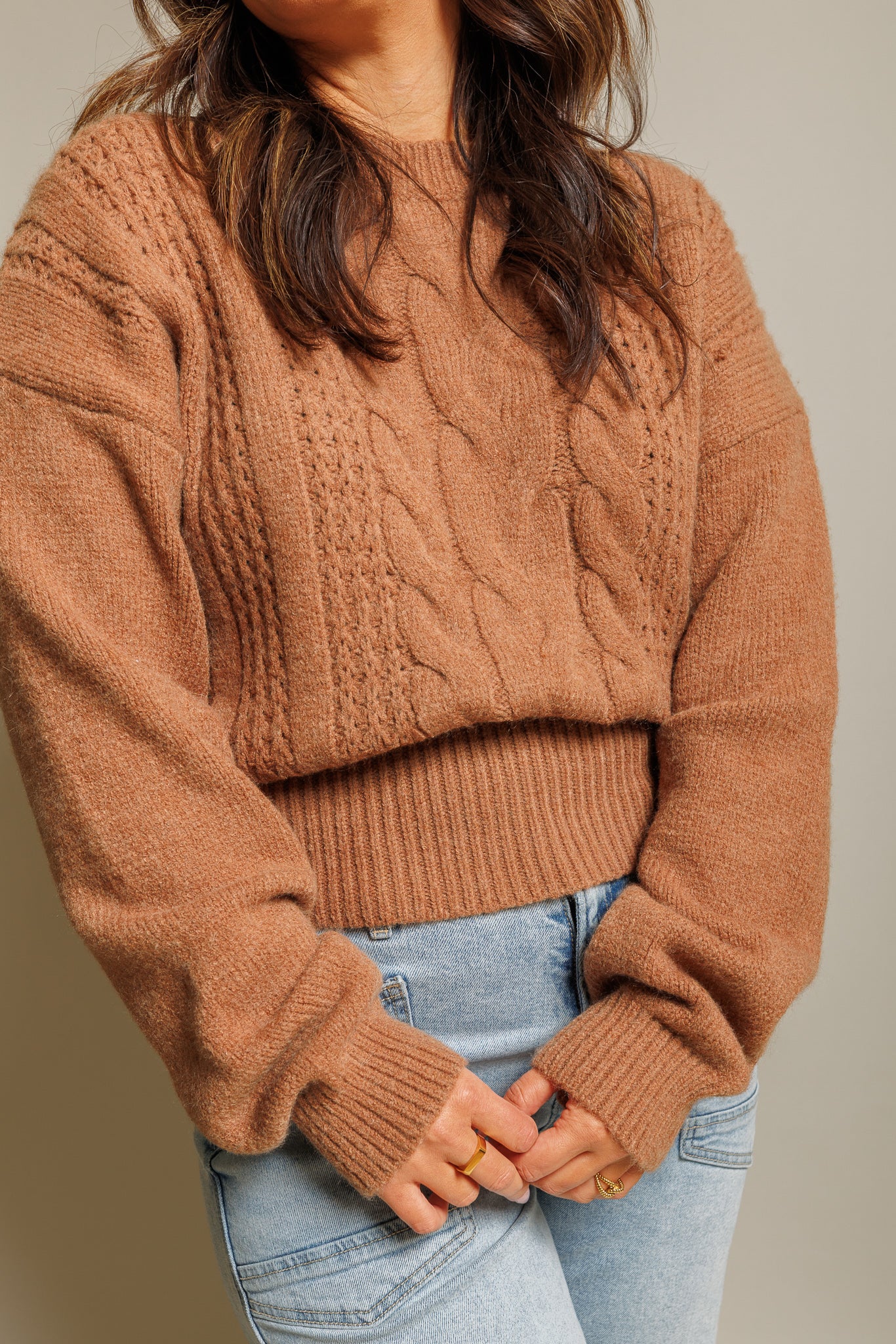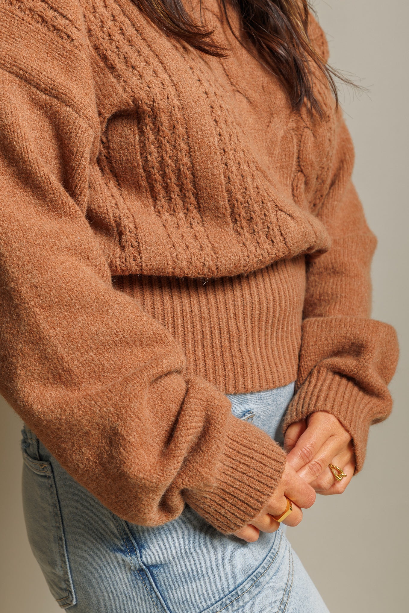 The Finn Top brings comfort and structure together in a way that feels effortlessly refined. This cable knit blouson sweater is made from a soft blend of acrylic, polyester, and nylon, giving it a cozy feel with a polished finish. The dropped shoulder adds relaxed ease, while the blouson shape creates a subtle, flattering volume. A simple, elevated piece made for everyday wear.