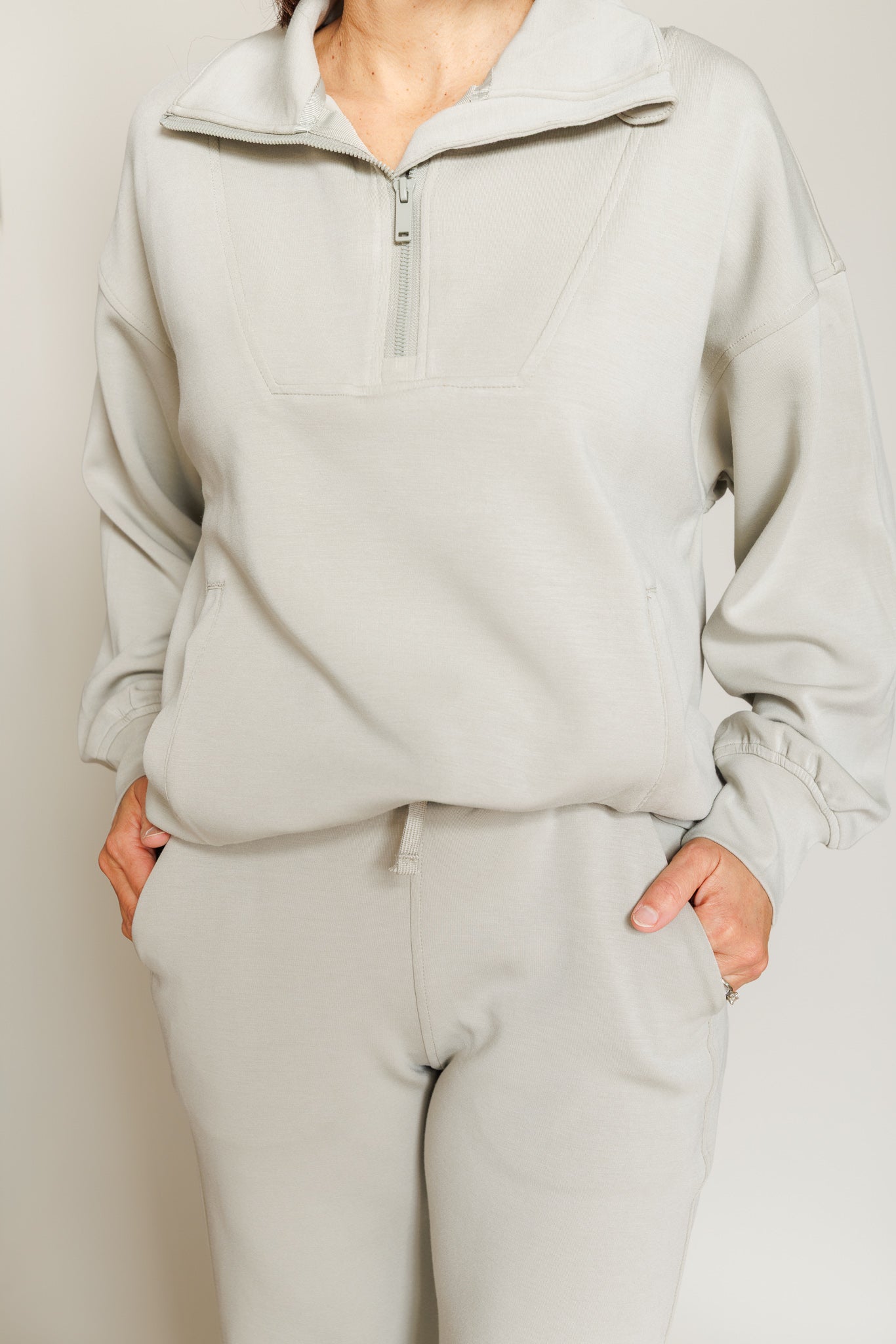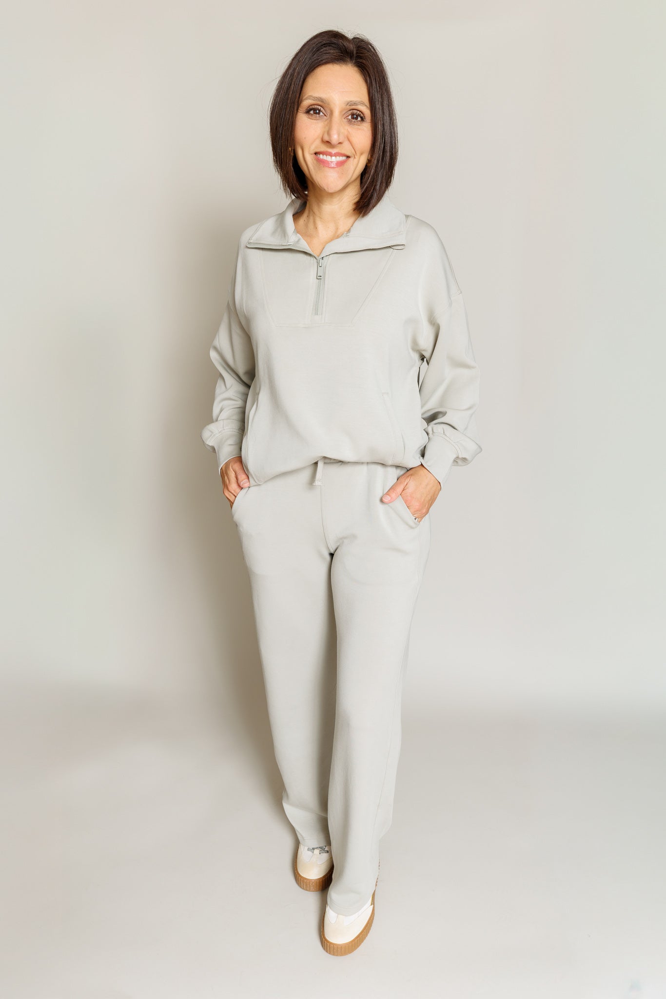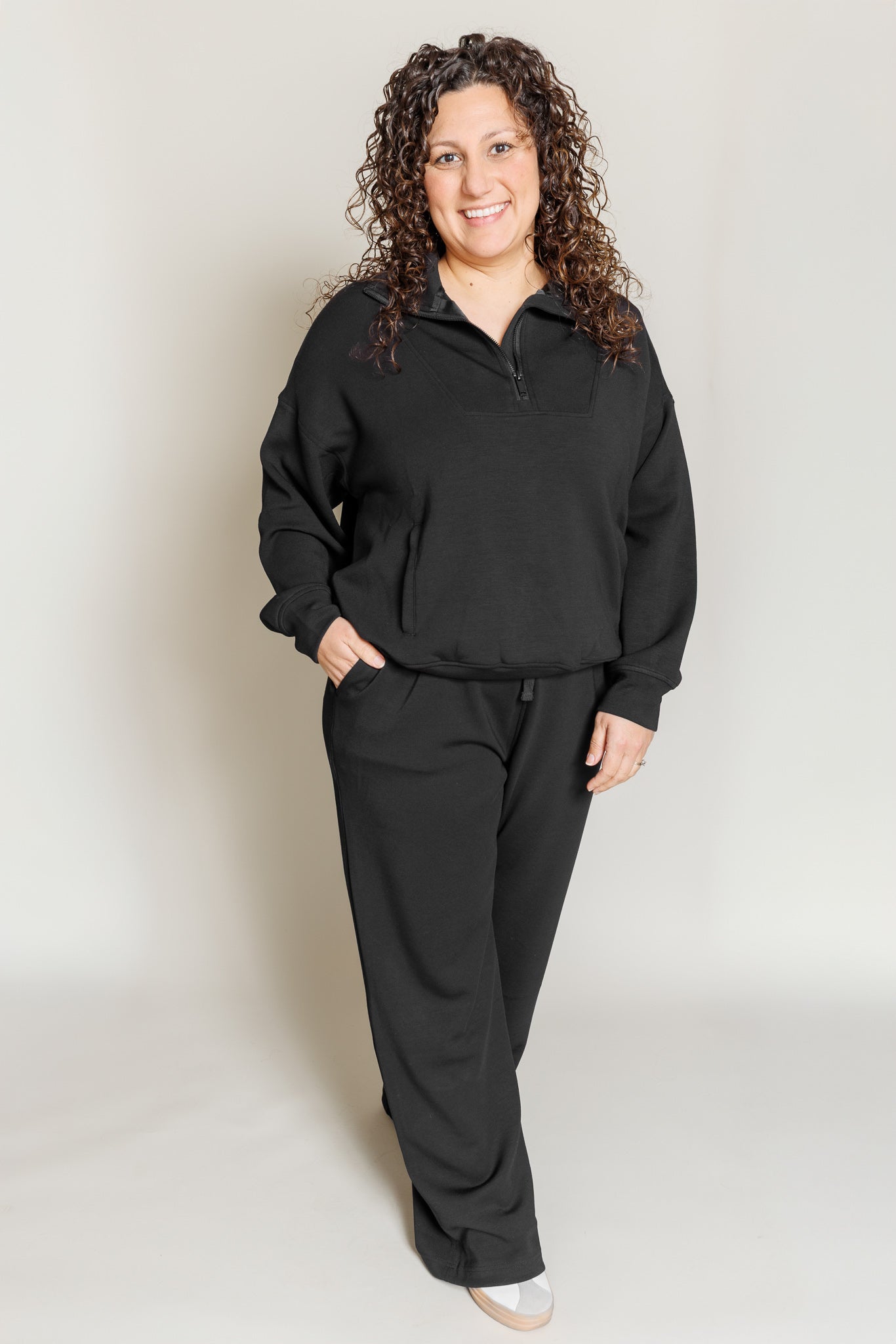 The Bettie Scuba Set by Rae Mode is your go-to combo for effortless style. This playful two-piece features a cozy quarter-zip mock neck pullover paired with sleek scuba straight pants. Crafted from a premium blend of polyester, modal, and spandex, this set delivers stretch and comfort that moves with you. Whether you're lounging at home or running errands, the Bettie Set keeps you looking put-together and feeling fabulous all day long.