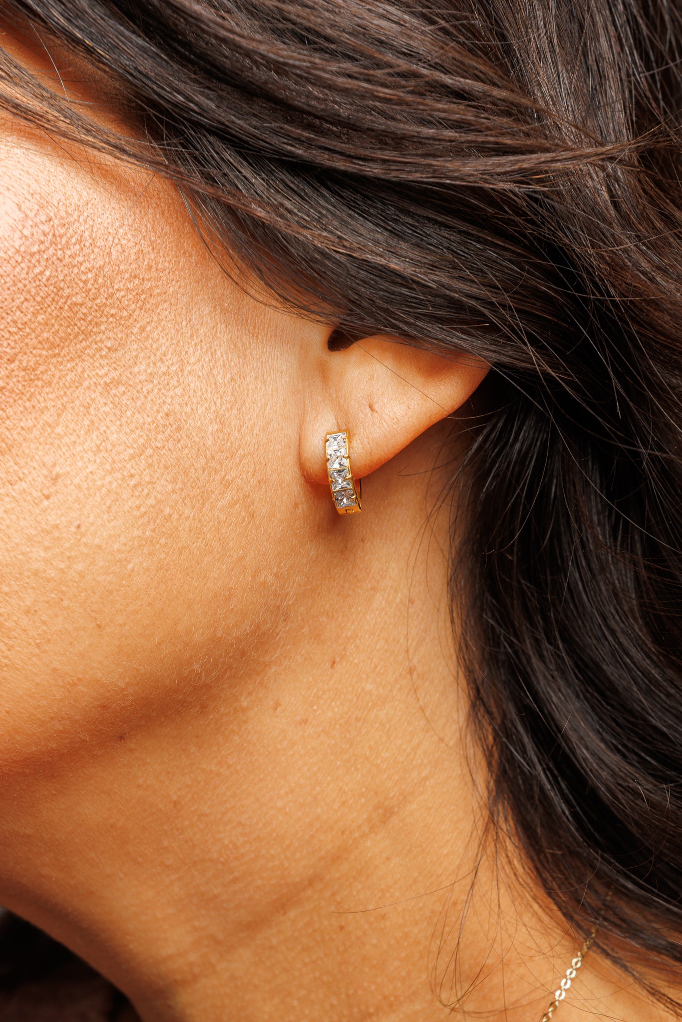 Bring a touch of sparkle to your day with the Demi Diamond Huggie Hoops! These waterproof hoops shine bright through every splash and smile, making them the perfect playful accessory for any occasion. Durable, chic, and ready for your next adventure—wear them rain or shine and keep the fun going!