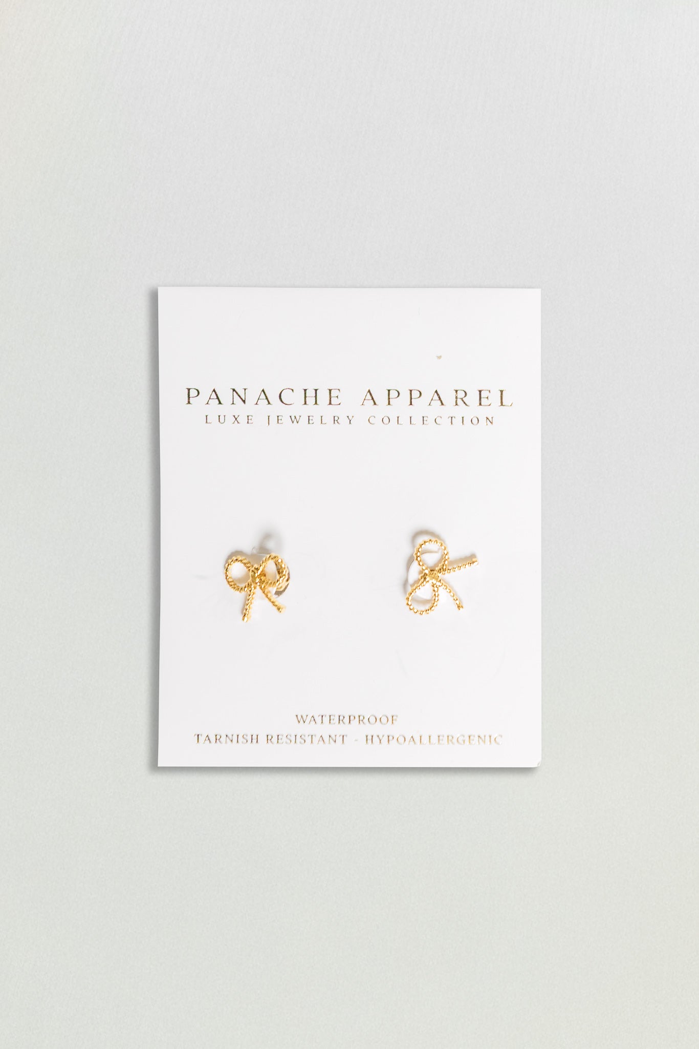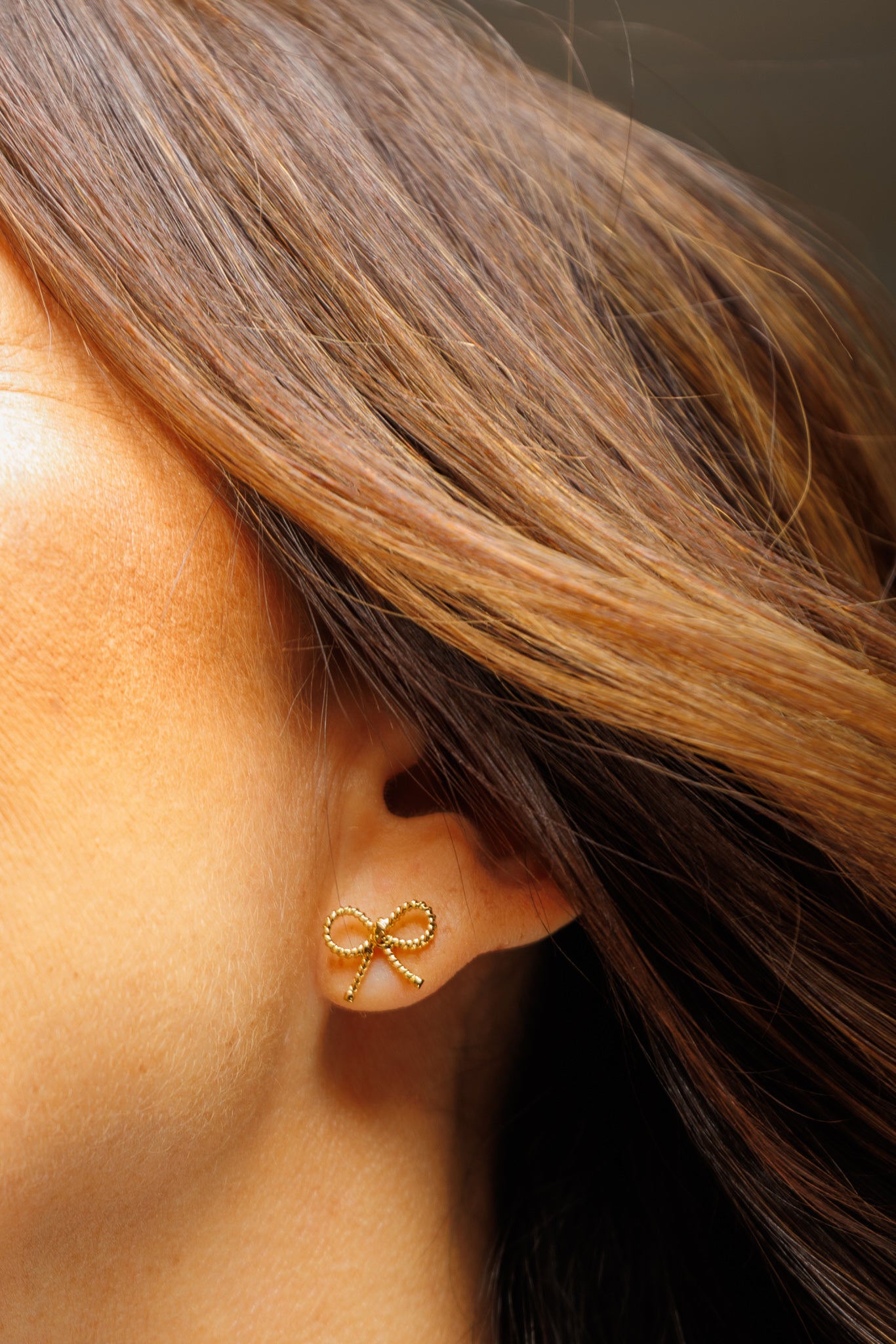 The Gold Rope Bow Earrings bring a soft, feminine touch to everyday styling. Designed with an elegant rope-inspired bow and finished in 18k gold plating, these earrings feel timeless yet distinctive. Crafted from waterproof stainless steel and made lead and nickel free, they’re an effortless accent you’ll reach for again and again.
