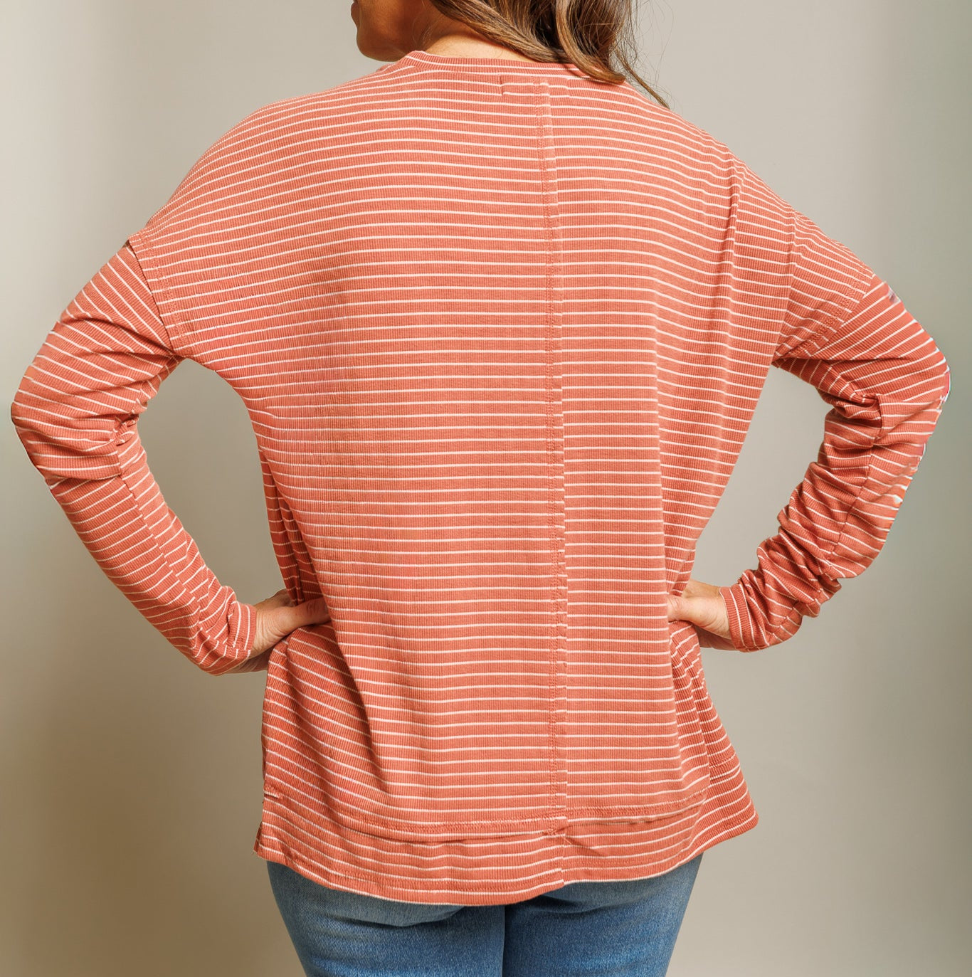 The Adara Top is the definition of easy styling. This ribbed micro-stripe design features a soft, stretchy feel with a relaxed, loose fit that moves with you. Side slits at the hem create a flowy silhouette that drapes beautifully without feeling slouchy. Crafted from a blend of polyester, viscose, and elastane, it’s the kind of everyday essential you’ll reach for again and again.
