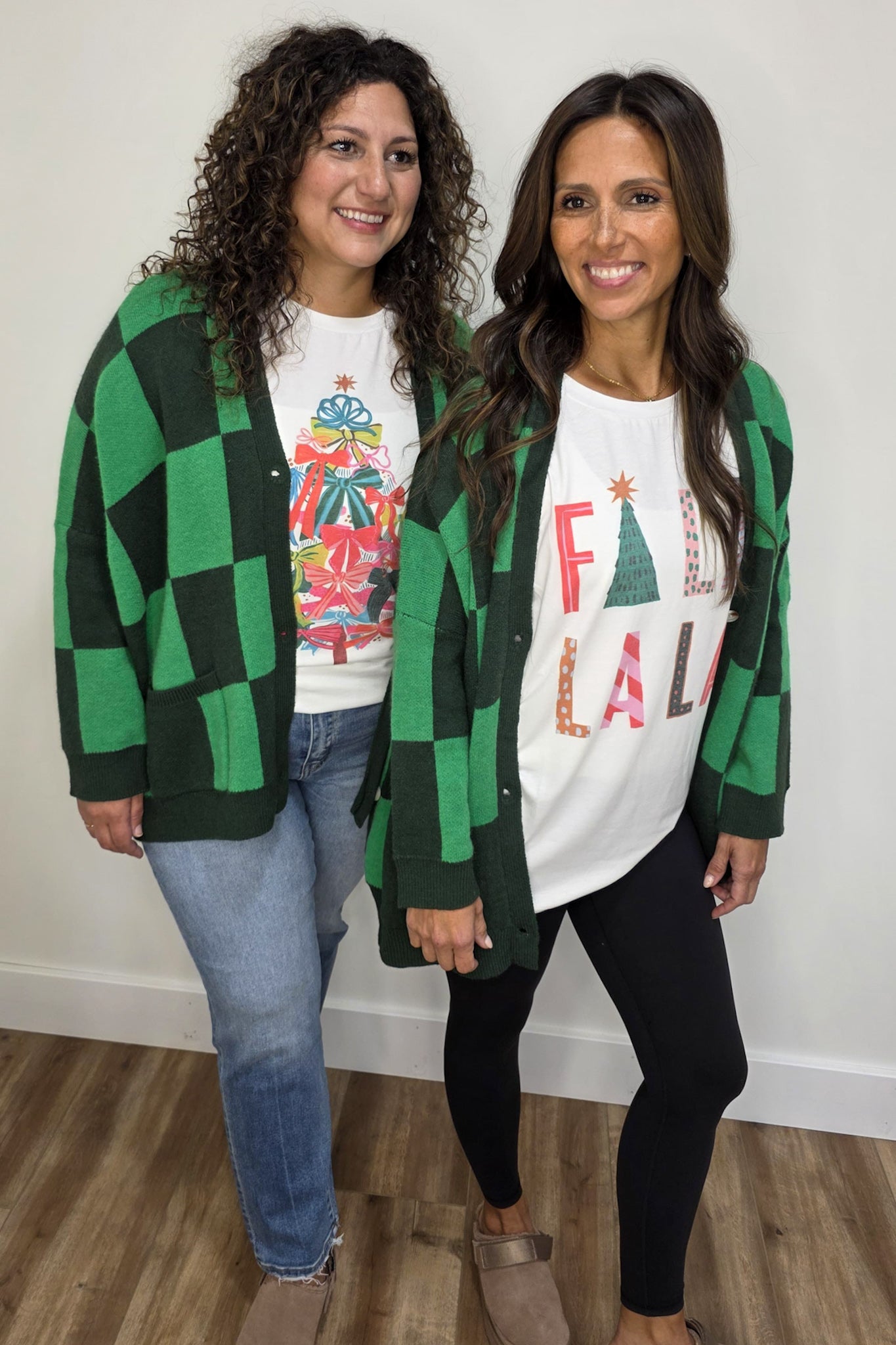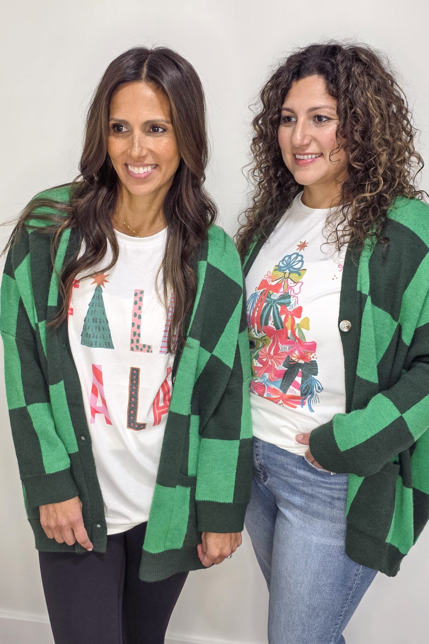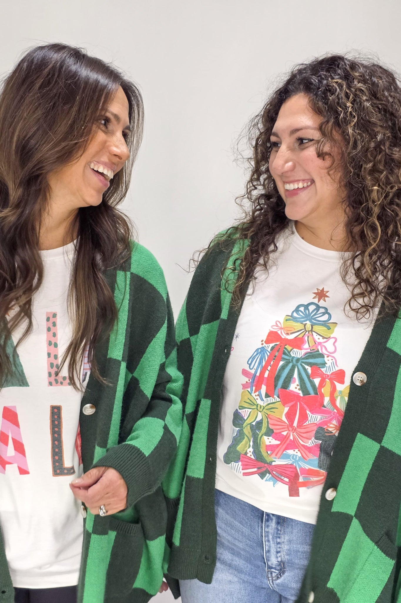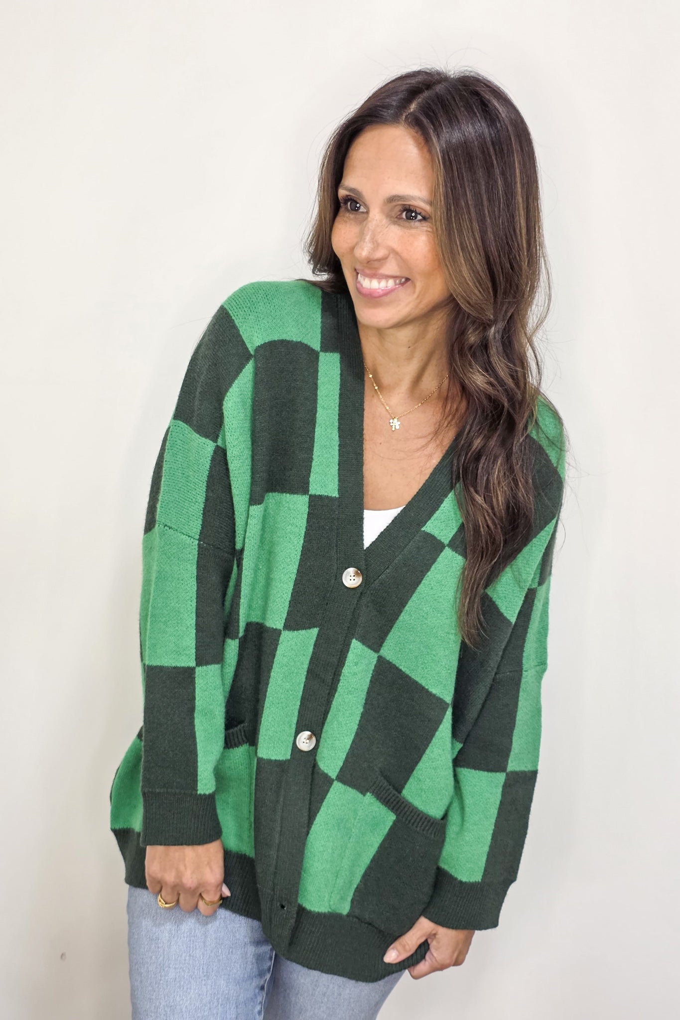 The Evie Cardigan is here to add a pop of personality to your everyday rotation. This oversized button-up cardigan features a vibrant checkered design that brings instant charm to any look. Crafted from soft acrylic, it's lightweight enough to layer year-round without the bulk. Those functional pockets are perfectly positioned for stashing essentials or just giving your hands a cozy home. Whether you're buttoning up for structure or wearing it completely open, this cardigan is your new go-to for looking effortlessly fun and put-together.